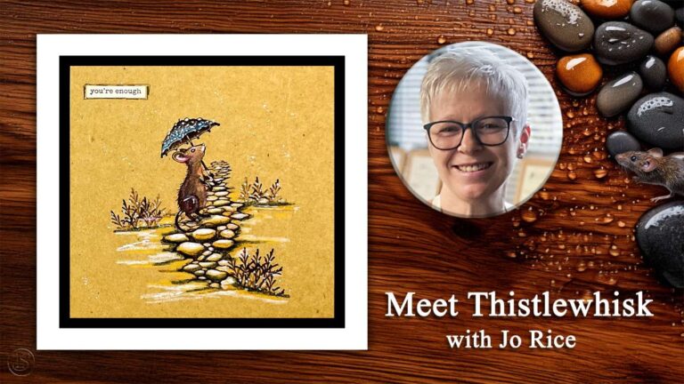 Hi everyone, Jo here — thanks so much for popping in. Today I’m stamping on Kraft card with a couple of our fabulous new stamps, including the adorable Thistlewhisk. We’ll take it nice and steady, adding colour with Mondeluz Watercolour Pencils, then finish with delicate highlights using gel pens and a touch of Posca to bring the design to life.