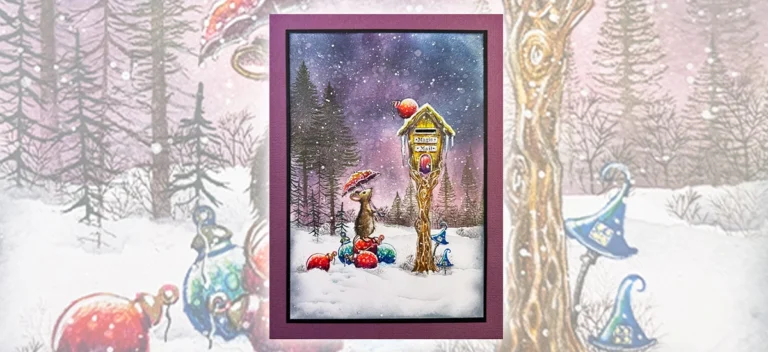 Join Mona in this tutorial as she creates this cosy, magical scene inside of a wreath, Mona shows how you can build up a wreath using mini stamps, creates the scene through it using the new stamp collection, she then continues to create that perfect blend of colour and then brings the wreath to life by highlighting and adding those