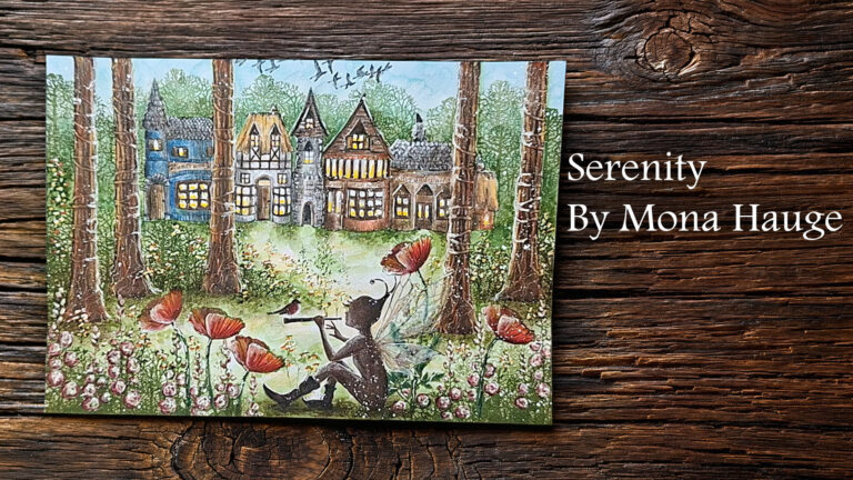 Welcome to another beautiful video tutorial from Mona, where she creates a truly serene and story-filled garden scene featuring Sky surrounded by peaceful wildlife, with a whimsical row of distant houses and shops adding depth and charm. Mona carefully builds her composition layer by layer, bringing the scene to life with rich flora, foliage, and intricate stamped details. Using clever