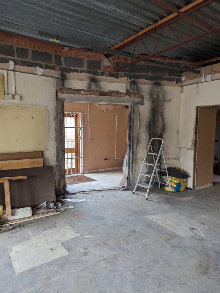 Oh! how things have changed! The light is finding its way from the windows at the front of the property and into the snug now that the walls have disappeared.