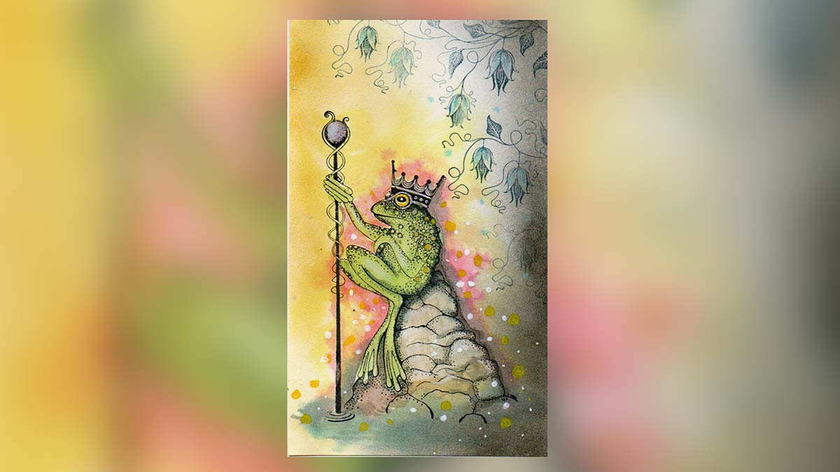 The background was created using Brusho Inks on a saturated Watercolour card, having first masked out the frog with Frisk Blue Masking Fluid.