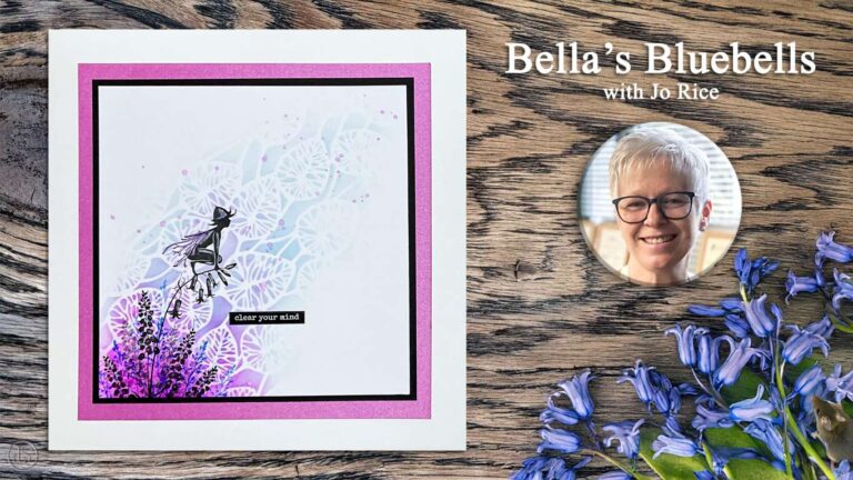 Hi everyone, I hope today is going well. I’m popping in with a beautiful little design using just a couple of stamps and a stencil. I’ve chosen Bella as my focal point, then I’ll add some extra bluebells, stamped in VersaFine Clair Nocturne and Paradise. Next, we’ll create a softly blended background with Elements inks in Blue Lagoon and Pink