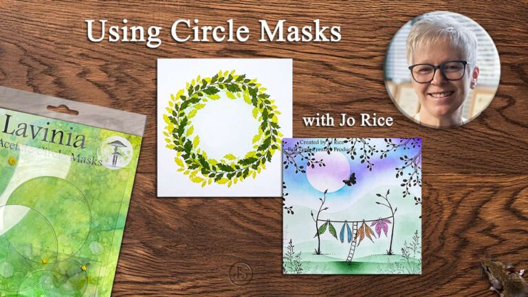 Hi everyone, Jo here again. I hope our catch up finds you well. Today we’re going to explore some of the different ways you can use the Lavinia Acetate Circle Masks. They’re such a handy little tool for creating shape, depth and focal points in your designs. As we try out a few techniques, we’ll also create a fun little
