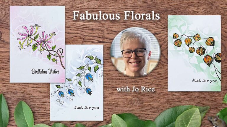 Hi everyone, Jo here with a simple card design that is wonderfully versatile and suitable for so many occasions. We will be working on B7 Multifarious card using just one main stamp, one stencil, one Versafine Clair ink pad (in Monarch) and one Elements ink pad. So if you do not have many supplies, this is ideal, and it is