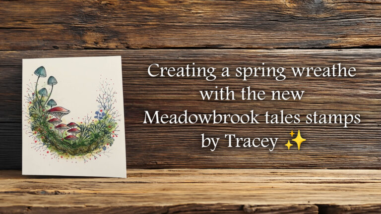 This little tag really showcases one of our new toadstools, Faedew. Sarah shows us how to make this inky background using Elements and an inky stencil. She then using paper piecing to add colour to the caps of the toadstools.