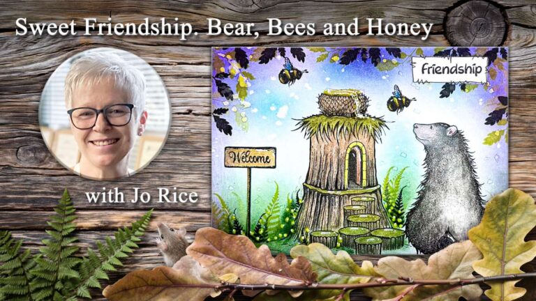 Hi everyone, Jo here. Thanks so much for joining me today. I’ve got a sweet little storybook design to share, all about the friendship between some busy bees and a rather hungry black bear. We’ll mix a few of our new stamps with some older favourites, stamping in Versafine Clair Nocturne and Avocado. For the background, I’ll blend Elements inks