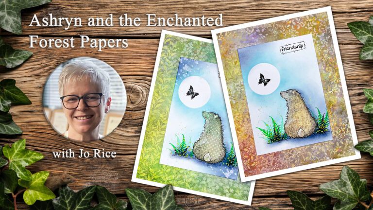 Hi everyone, Jo here. Thanks so much for popping in again, I hope your day is going well. Today we’re going to play with one of the Enchanted Forest Dreamscape papers and combine two really useful techniques, paper piecing and gutting, don’t worry, it isn’t painful! I’ll be making a topper featuring our gorgeous new bear, Ashryn, and using the