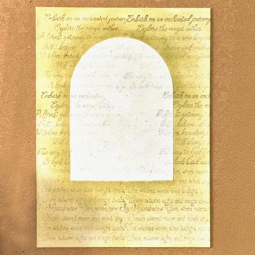 Using a piece of Lavinia A6 size white multifarious card place on the Arch from the Sticker Stencil 5 set in the position shown.