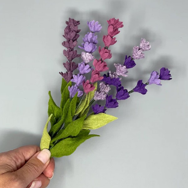 Your Felt Lavender Craft Kit contains:  Wool mix felt fabric, florist stems, florist tape, step by step colour instructions and templates.