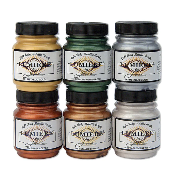 Includes 6—2.25 fl oz/66.54 ml jars of Lumiere paint