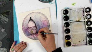 Diluted Brusho inks, dappled onto a Gel Press over a base of brayered Elements ink makes for a lovely backdrop for our pair of cute little hares. The wind-blown Tree of Courage sits perfectly over the edge of the circle, and a glint of Eco-Glitter completes the picture. The Products Used Tree of Courage Woodland […]
