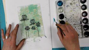 To create the feeling of a summer meadow, Tracey first coated the Gel Press with a thin layer of Graphite, from the Elements range of inks, and then used a fan brush to deliver a spattering of diluted Brushos. The result was a perfect setting for our two fluffy pussy cats, Mooch and Mimsy. The […]