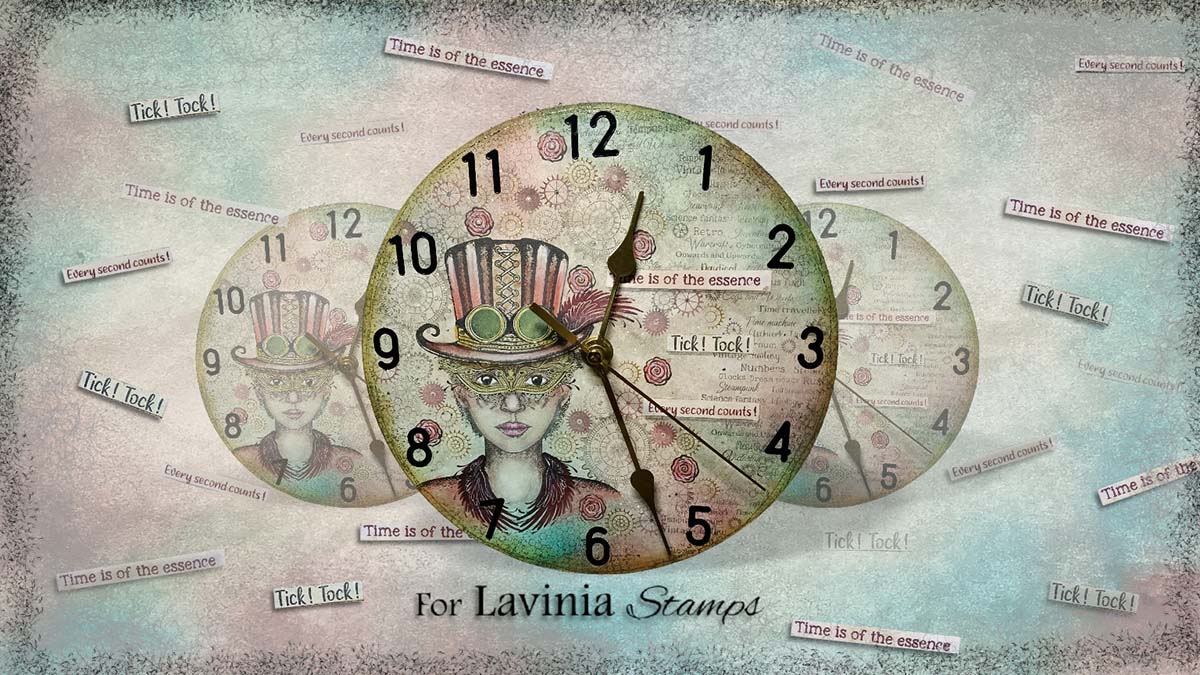 For my tutorial today, I am doing something different. I have thoroughly enjoyed working with the new stamps and I decided to make a working clock to have in my craft area. I am using Acrylic Sprays to make my Background and then I am using the beautiful Zia with her Masquerade mask that is full of detail. The Small set of angel wings I have used as a feather for her hat and for like a collar on a jacket. Then I will be doing some stamping in 2nd generation of stamping using some of those cogs and texture stamps and those are fabulous to use.